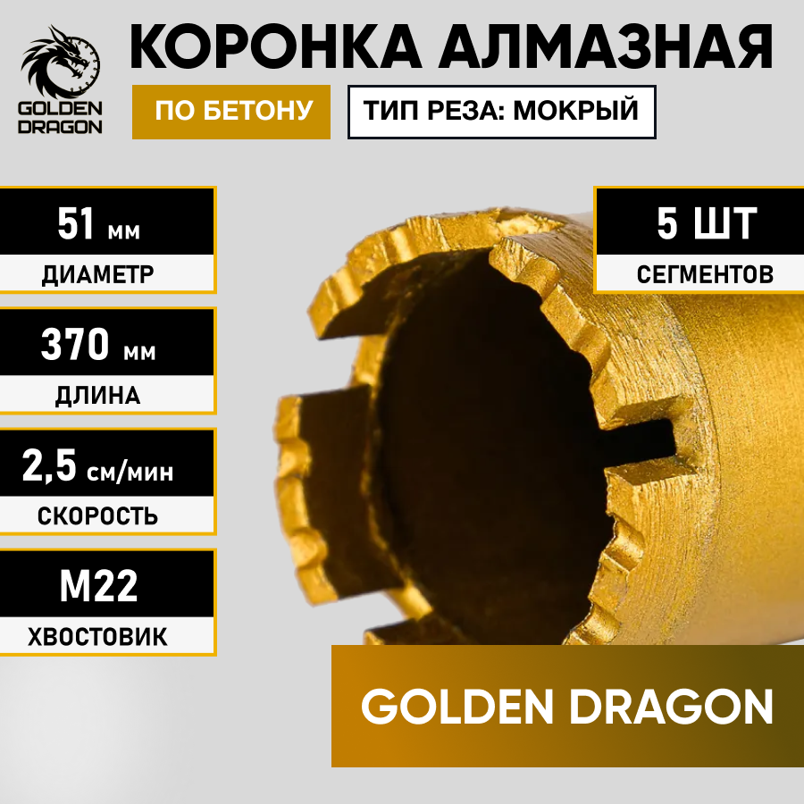 Коронка алмазная М22 051/370 по бетону Golden Dragon