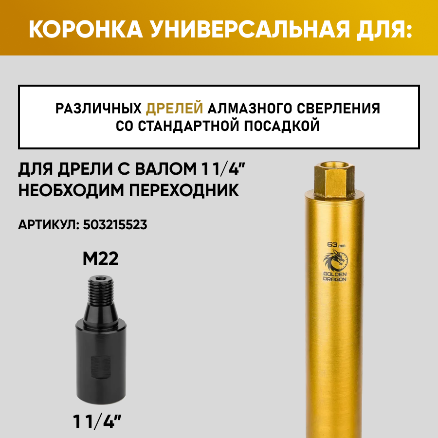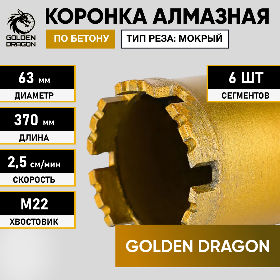 Коронка алмазная М22 063/370 по бетону Golden Dragon