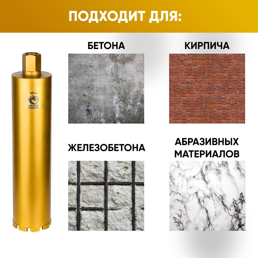 Коронка алмазная 1 1/4" 112/400/9 сегм. по бетону Golden Dragon