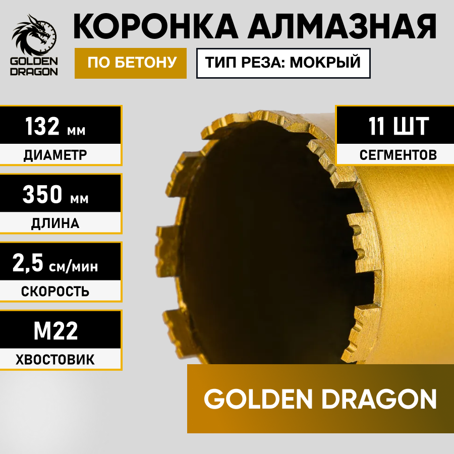 Коронка алмазная М22 132/350 по бетону Golden Dragon